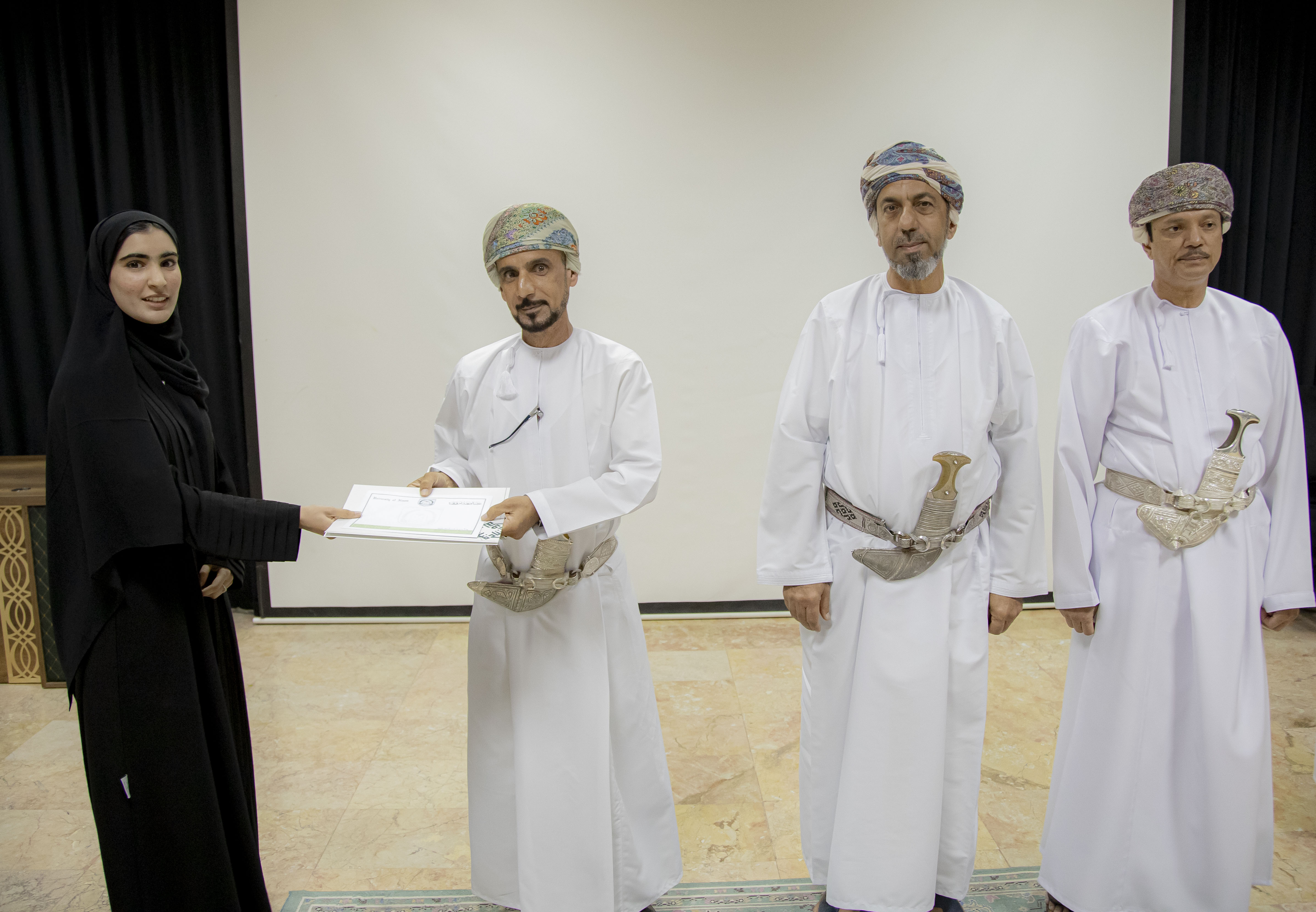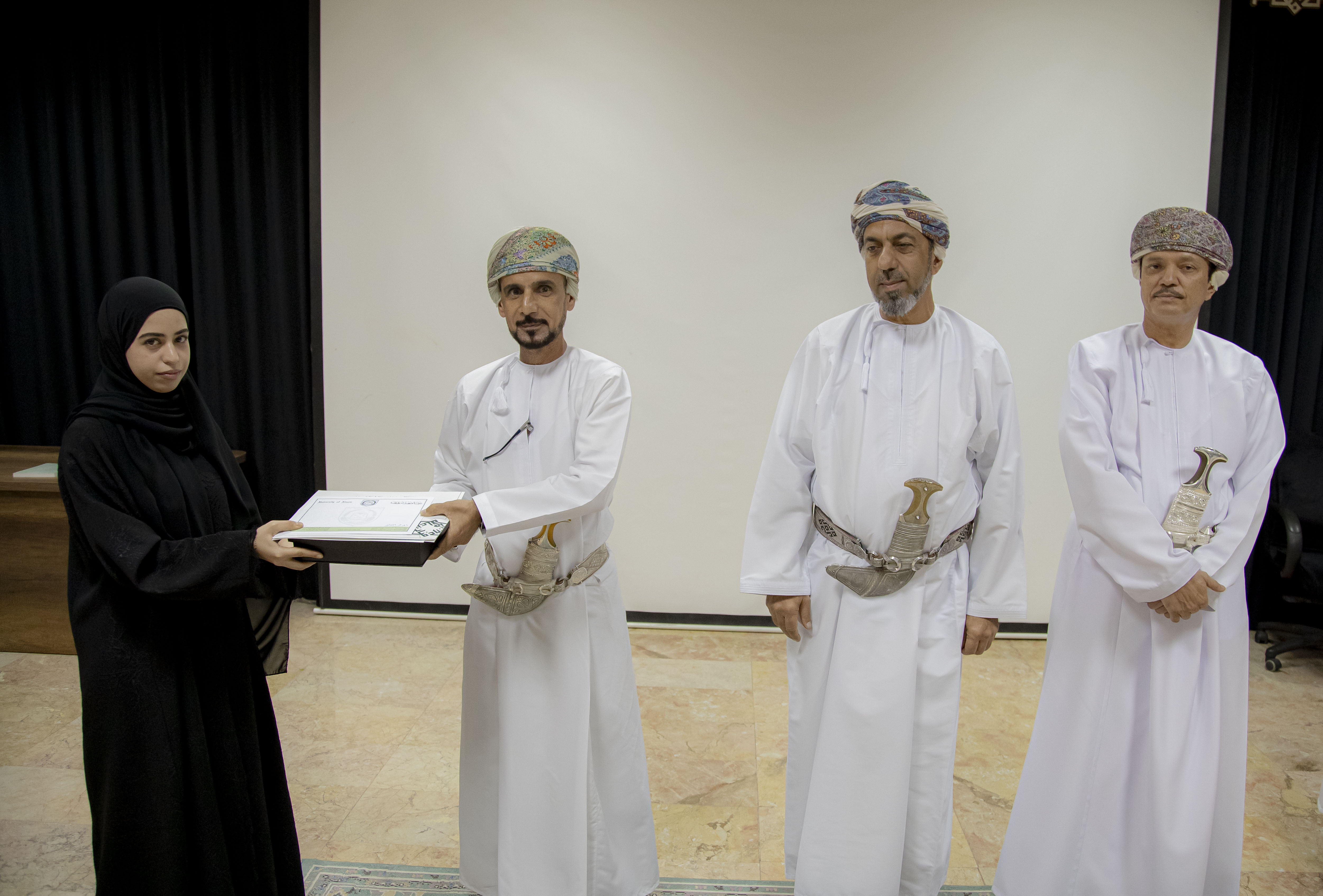 ضمن احتفالاتها باليوم العالمي للغة العربية لعام 2025م، أعلنت جامعة نزوى نتائج المسابقة الإبداعية الطلابية السنوية الأولى لطلبة مؤسسات التعليم العالي في سلطنة عُمان في مجال القصة القصيرة، وذلك خلال الحفل الذي نظمه قسم اللغة العربية بكلية العلوم والآداب، في سياق احتفائه بلغة الضاد وإبراز مُنجزات المُبدعين الشباب في الحقول الأدبية والفكرية.