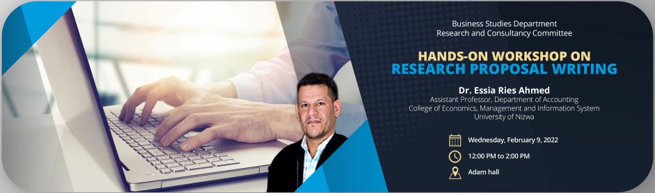 A workshop entitled,"Hands-on workshop on research proposal writing," was conducted on February 9, 2022, from 12-2 PM at UTAS-Nizwa.