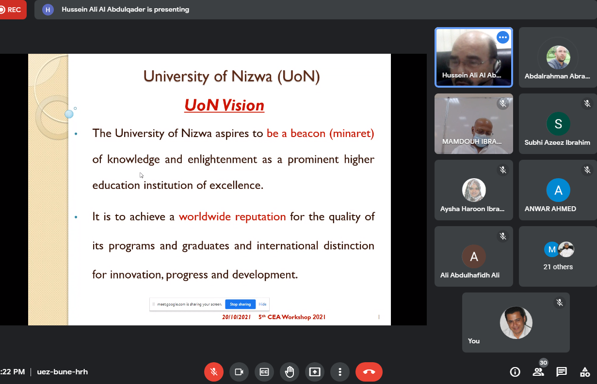 5th CEA Annual workshop 2021-2022 Day I Based on the University Executive Board for Academic Affairs (EBAA) chaired by Prof Dr Abdulaziz Al Kindy and based on his instructions and based on the CEA Organization Annual Workshop