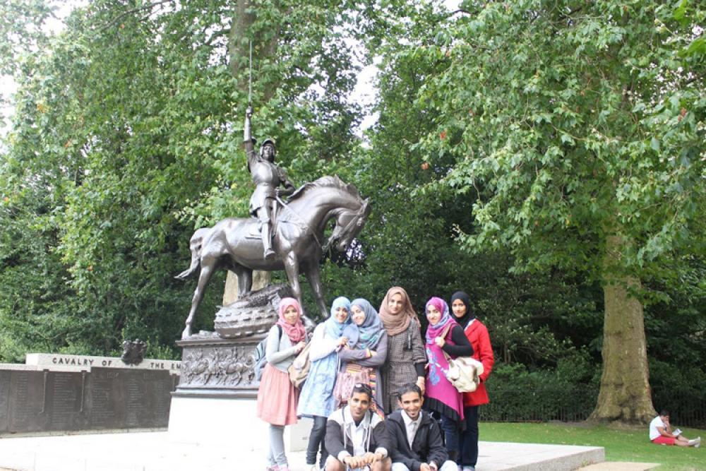 من لندن- سلوى العنقودية: ضمن البرنامج الثقافي الّذي تنفذه الجامعة لطلاب "برنامج آفاق عالمية للدِّراسة الصيفية 2014م" في المملكة المتحدة، نظمت الجامعة رحلةً ثقافيةً للطلاب الذين يبلغ عددهم سبعة وثلاثين طالبًا وطالبةً. وقد تعرف الطلاب من خلال الرّحلة على الحضارة البريطانية وثقافة الشعب البريطاني، حيث زاروا عددًا من المعالم الشهيرة هناك، التي من بينها قلعة "وندسور"، والتي تعد من أقدم وأكبر القلاع في العالم، حيث أنها البيت الملكي لكثير من الحكام والملكات لأكثر من 1000 سنة، و تتميز هذه القلعة بأنها السكن الحالي للملكة اليزابيث الثانية، حيث تقضى معظم أيام العطل والإجازات السنوية، والرسمية فيها ليرفع العلم أثناء تواجدها هناك مما يبهج تواجد الزوار بوجود الملكة. كما زار طلاب البرنامج قلب العاصمة البريطانيَّة لندن، حيث استمتعوا بالمناظر السِّياحيَّة الخلابة، الَّتي من بينها: هايدي بارك كورنر وهي إحدى محطات مترو الأنفاق في لندن. تقع على خط بيكاديلي وقد أفتتحت بتاريخ 15 ديسمبر 1906، والتي تتميز بمساحتها الخضراء الممتدة وتواجد أنواع مختلفة من الزهور العطرة، وزار الطلاب كذلك مدينة الملاهي" ثروب بارك" والتي تتميز بالألعاب المثيرة للحماس وقد قضوا فيها يوما ممتعا وجميلا. من جانب آخر نظم الطلاب مباراة كرة القدم تجمعها ثقافات مختلفة من الدول العربية والأجنبية جمعها حب التحدي والإثارة لتسديد كرة القدم في مرمى الخصم، حيث انتهت المباراة بفوز فريق طلاب الجامعة بـ9 أهداف مقابل6.