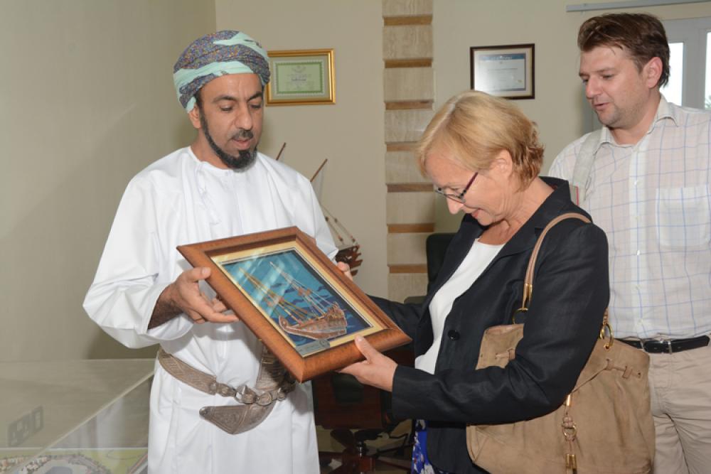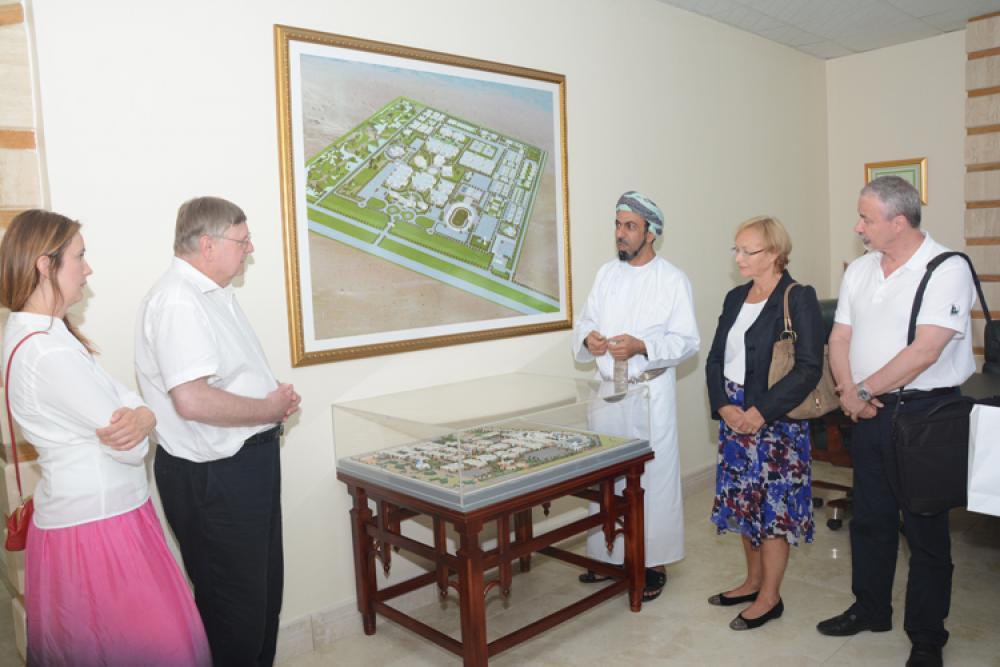 استقبل الأستاذ الدكتور أحمد بن خلفان الرواحي -رئيس الجامعة – مساء اليوم الأربعاء الموافق(10/9/2014م) معالي الدكتورة لينا كولارسكا بوبنسكا- وزيرة العلوم والتعليم العالي بجمهورية بولندا والوفد المرافق لها، وذلك ضمن برنامج الزيارة التي تقوم بها الوزيرة البولندية للسلطنة. وقد بحث الجانبان أوجه التعاون الأكاديمي و البحث العلمي بين جامعة نزوى والجامعات البولندية، إلى جانب استعراض تجربة جامعة نزوى البحثية والأكاديمية، وعرض تاريخها ونشأتها وأهم الكليات والمراكز التي تشملها والخدمات التي تقدمها. عقب ذلك قدم رئيس الجامعة لمعالي الدكتورة لينا مولارسكا عرضا لمجسم الحرم الجامعي الرئيس، شرح من خلاله هيكلة الجامعة ومرافقها الأساسية، بالإضافة إلى مراحل الإنشاء والبناء، وشاهدت معالي الدكتورة فيلما وثائقيا عن الجامعة وتاريخها. واختتم اللقاء بتكرم رئيس الجامعة بتقديم هدية تذكارية لمعالي الدكتورة وزيرة العلوم والتعليم العالي البولندية والوفد المرافق لها. |