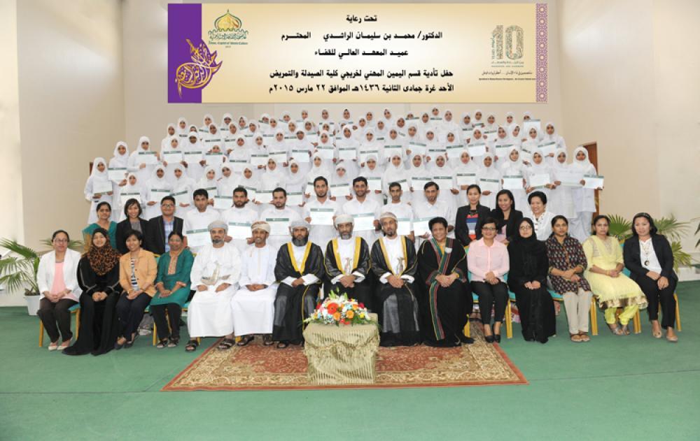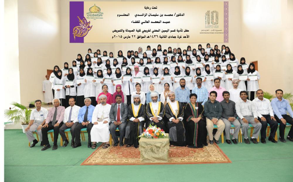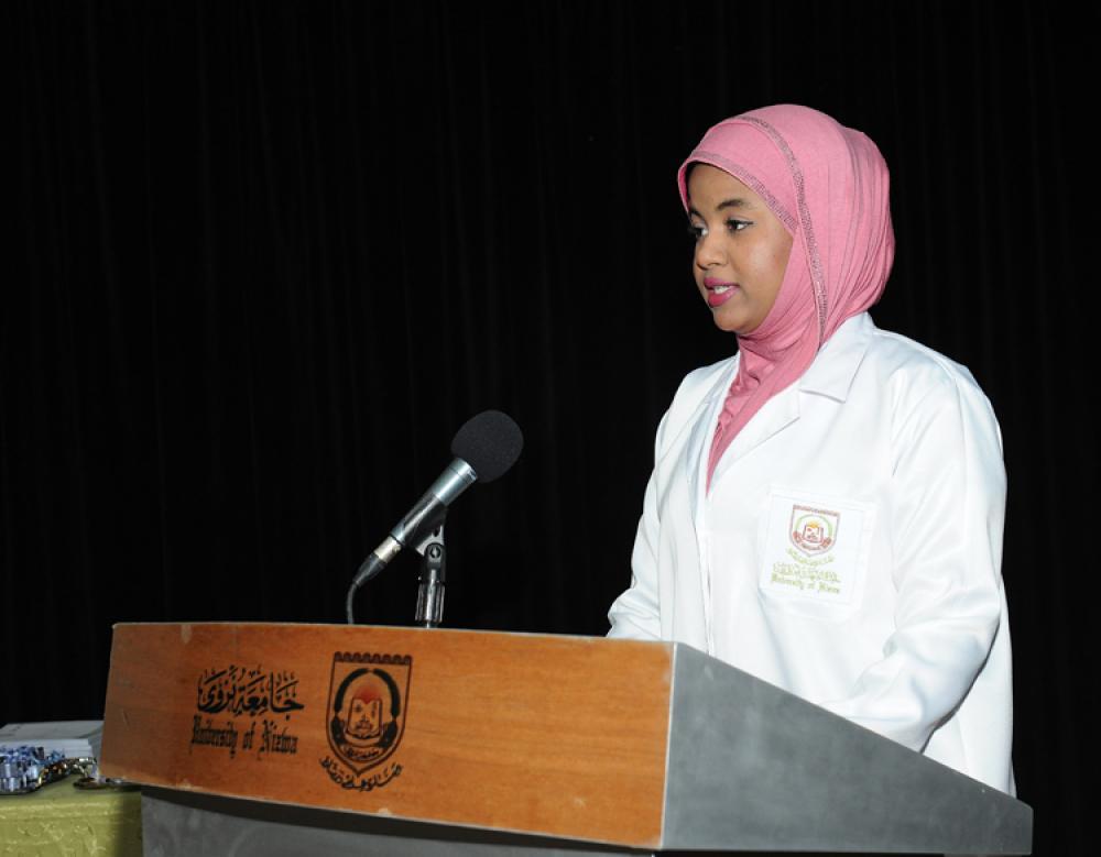 اليمين المهني لخرِّيجي كلية الصيدلة والتمريض بجامعة نزوى. بدأ الحفل بآياتٍ من
