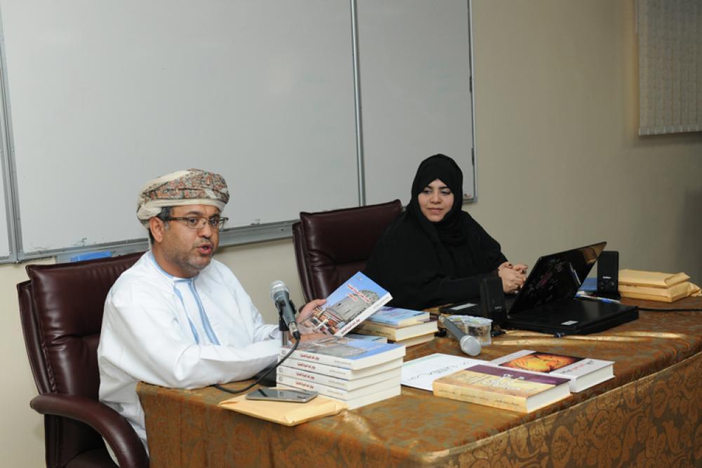 محمد بن ناصر المحروقي –مدير المركز- الباحثة والكتاب الذي ألفته، مشيرا إلى دور
