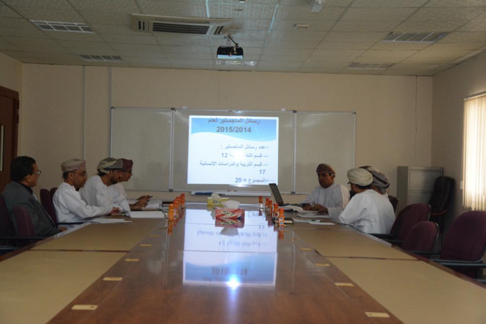 عقد المجلس الاستشاري لكلية العلوم والآداب اجتماعه الأول، وذلك يوم الخميس الموافق(29/10/2015م) بحضور ممثلين من ثماني مؤسسات حكومية. وتم في الاجتماع انتخاب الدكتور أحمد بن محمد القاسمي -مدير عام التخطيط والدراسات بوزارة الصحة- رئيسا للمجلس، والدكتور بدر بن حمود الخروصي- مدير عام تنمية الموارد البشرية بوزارة التربية والتعليم- نائبا له. وبدأ الاجتماع بترحيب الدكتور عبدالله بن سيف التوبي -عميد كلية العلوم والآداب- بالحضور، وقدم لهم الشكر وللجهات التي يعملون بها على الموافقة على الانضمام إلى المجلس، موضحا أن الكلية بشكل خاص والجامعة بشكل عام تعلق آمالا كبيرة على ما سيقدمه المجلس من اقتراحات وعون لتحقيق رسالة الكلية وخطتها الاستراتيجية، واقتراح الآليات المناسبة لتحقيق الشراكة المجتمعية للكلية، إضافة إلى تعزيز فرص الطلاب للممارسة العملية، وتقديم التغذية الراجعة عن برامج الكلية ومخرجاتها، ثم قدم نبذة مختصرة عن الكلية ورسالتها ورؤيتها وأهدافها وبرامجها الأكاديمية والبحثية وخدمة المجتمع. |