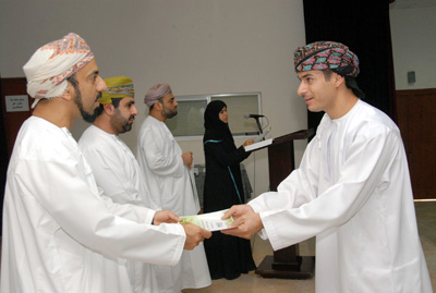 انطلاقًا من مبدإِ الجامعةِ في خدمةِ المجتمعِ من أفرادٍ وهيئاتٍ ومؤسساتٍ، وتطويرِ الكوادرِ المهنيةِ، وتنميةِ المواردِ البشرية بالشكلِ المطلوبِ، والذي يتوافقُ مع متطلباتِ العصرِ من جهة، والتعاونِ المشتركِ وتبادلِ الخبراتِ بين المؤسسات من جهةٍ أخرى؛ تعاونت الجامعةُ مع وزارةِ الصحةِ - ممثلةً بالمديرية العامة للخدمات الصحية بالمنطقةِ الداخليةِ- في تقديمِ العديدِ من الدوراتِ للعاملين بالمديرية، فقد تم صباحَ اليوم السبت (24/5/2008م) تكريمُ المشاركين في حفلٍ أقامته الجامعةُ تضمنَ التعريفَ بالخدماتِ التي تقدمُها المديريةُ العامةُ للخدماتِ الصحية بالمنطقة الداخلية، وعرضَ فيلمٍ للدورات التي قدمُها مركزُ التعلم مدى الحياة ، التي كان منها: