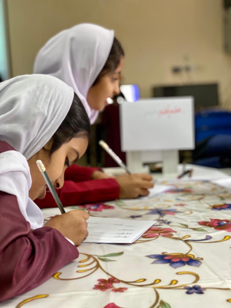 ضمن الأسبوع الثقافي الذي تقيمه مدرسة مدينة العلم للتعليم الأساسي بنزوى تحت عنوان (فجر طاقاتك)، وانطلاقا من دور الجامعة في نشر الثقافة والمهارات الحياتية داخل وخارج الجامعة، شارك مركز التميز الطلابي ممثلاً بجماعتي المسرح والموسيقى وجماعة الخط العربي في إقامة ورشتي عمل لطلبة المدرسة، وذلك يوم أمس الإثنين 2/3/2020. شملت ورشة الخط العربي بجانبيها النظري والعملي تعليم الطلاب أنواع الخطوط العربية وكذلك الأدوات المستخدمة للكتابة، فيما قدمت الورشة التي نظمتها جماعة المسرح والموسيقى تدريبا في إعداد الممثل شملت عدداً من التمارين الحركية والتي حازت على عجاب الطلبة. قدم ورشة الخط العربي الطالبة نورة بنت حمد الحديدية والطالبة شهد بنت سعيد الوردية، وقدمت ورشة جماعة المسرح والموسيقى كلاً من الطالبة روان بنت سيف العامرية والطالبة أمل بنت ناصر العبرية. |