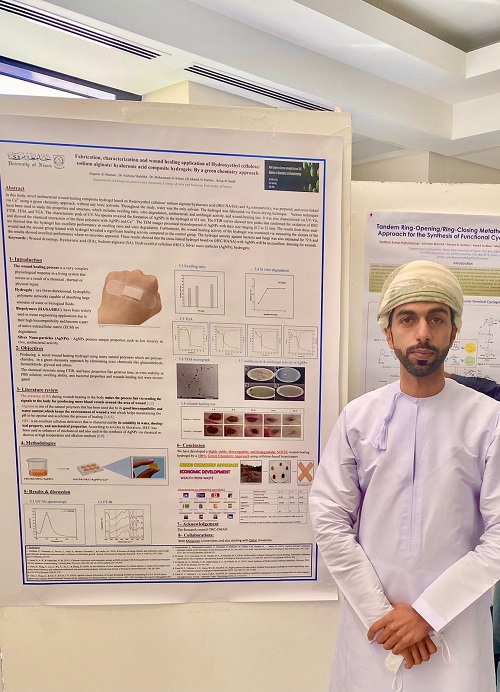 وقد جاء هذا الإنجاز إبّان عرض الجامعة لمشروع: (تصنيع وتوصيف وعلاج الجروح باستخدام السليولوز الطبيعي المستخرج من شجرة النخيل) للباحث القاسم المعمري؛ وذلك تحت إشراف الدكتورة فاطمة حسين والدكتور محمد السيباني، رئيس قسم علوم الحياة والكيمياء. |