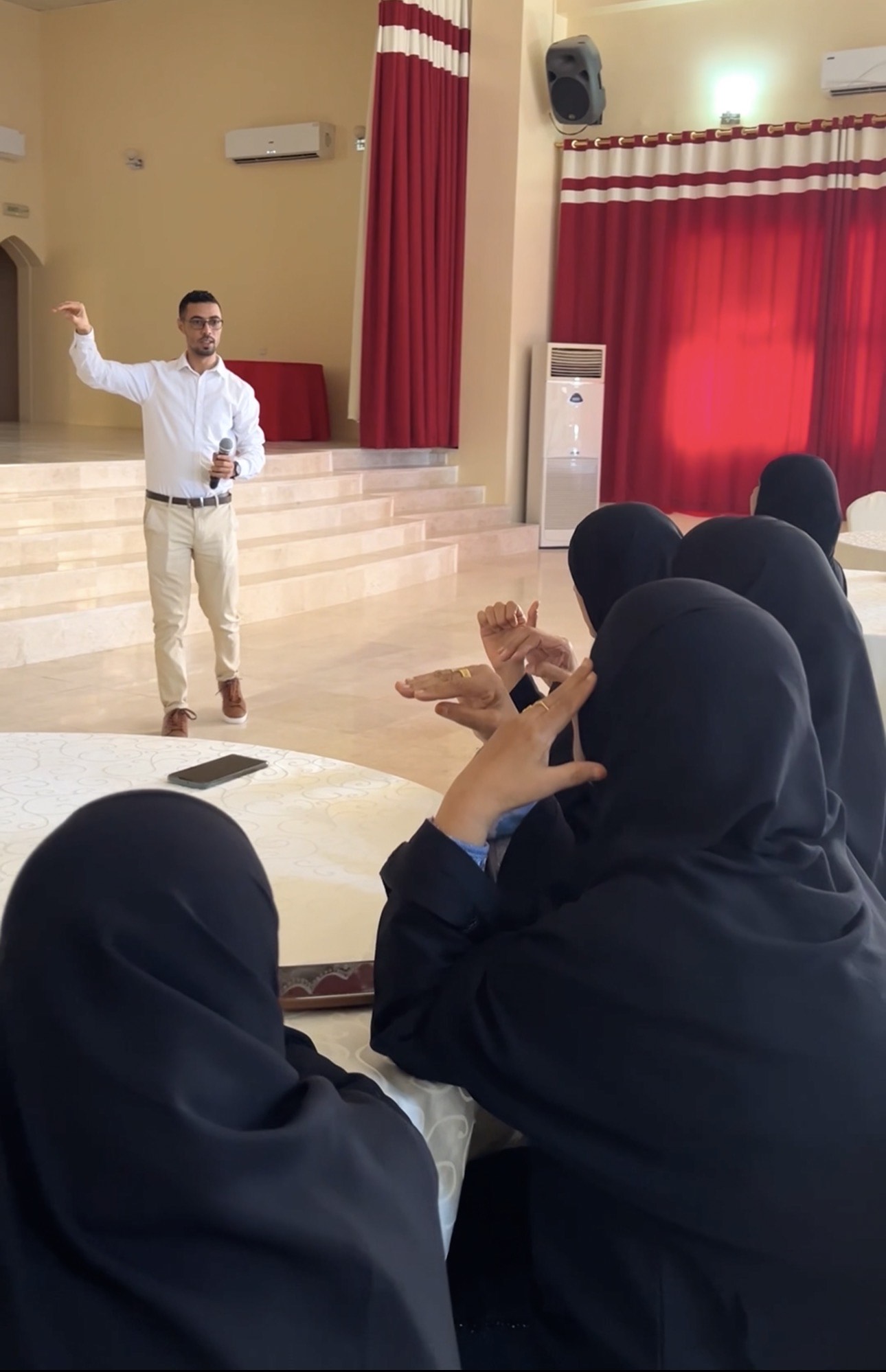 يأتي تنظيم الورشة والتي قدمها اغسان بن حامد مترجم لغة الإشارة بقسم التربية ضمن جهود الجامعة بنشر الوعي المجتمعي وتعزيز التواصل مع فئة الصمّ. تضمنت الورشة مجموعة من المحاور والمتمثلة في تعلم الحروف الأبجدية الإشارية والمفردات الأساسية المستخدمة في حياتنا اليومية لتسهيل عملية التواصل مع فئة الصمّ، إضافة إلى تطبيقات عملية شهدت تفاعلاً كبيرا بين المشاركين. |