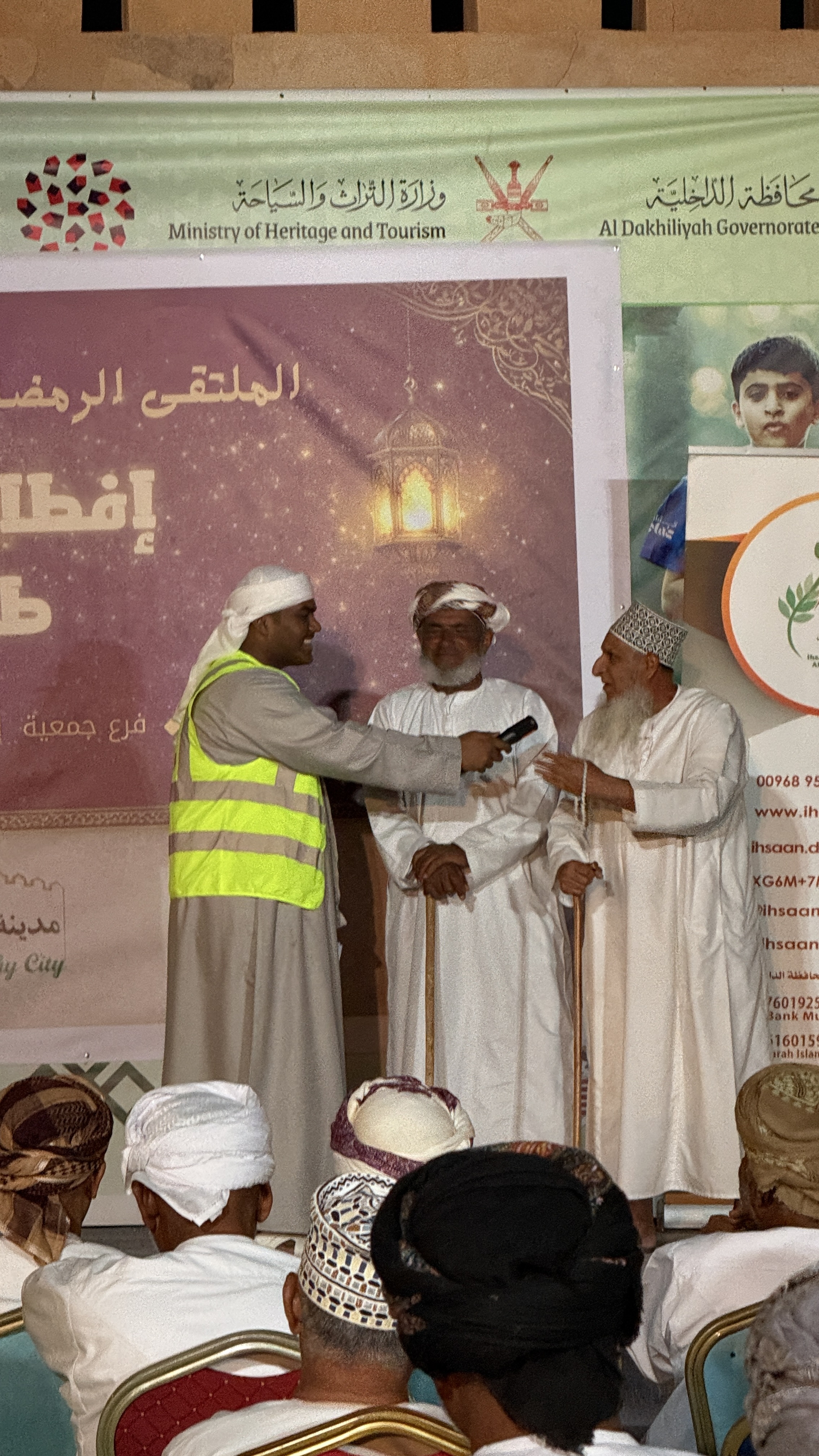 في مشهد إنساني مفعم بالمحبة والوفاء، احتضن حصن بيت الرديدة ببركة الموز بمحافظة الداخلية ملتقى «إفطار طيب الأثر» الرمضاني، الذي نظمه فرع جمعية إحسان بالمحافظة بالتعاون مع جماعة خدمة المجتمع والعمل التطوعي بالجامعة، بمشاركة قرابة 500 من المسنّات والمسنّين القادمين من مختلف ولايات الداخلية، في فعالية جسدت أسمى صور التراحم والتكافل الاجتماعي خلال الشهر الفضيل.