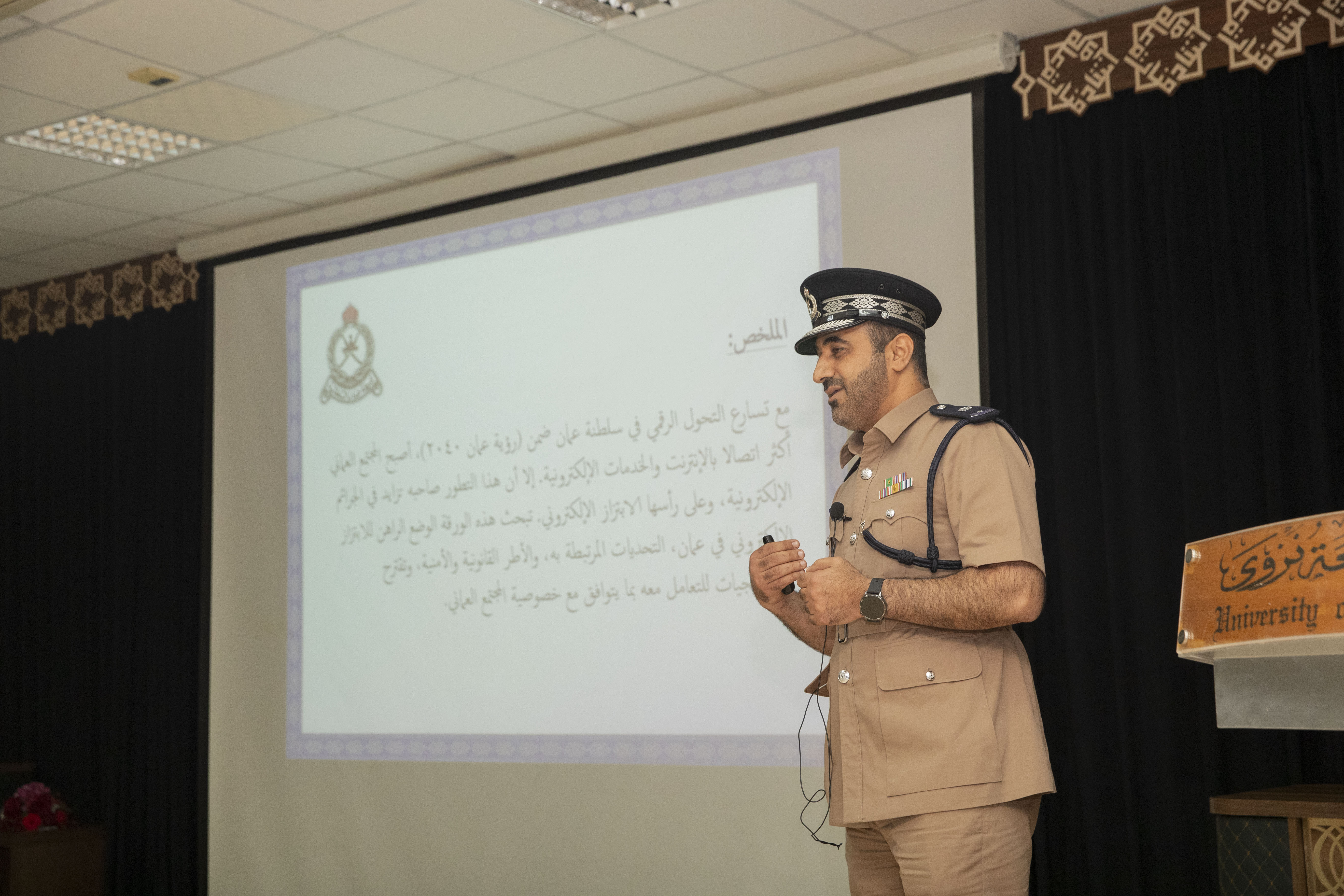 نظّمت المديرية العامة للادعاء العام بمحافظة الداخلية، ممثلة بفريق “مديريتي تتواصل”، وبالشراكة مع جامعة نزوى ممثلة بمركز خدمة المجتمع، فعالية احتفالية بمناسبة اليوم العالمي للقانون الذي يصادف الثالث عشر من سبتمبر من كل عام، تحت شعار: “المجتمع بين الوعي التقني والتضليل”، وذلك برعاية الفاضل قاسم بن سالم الغافري – مساعد المدعي العام، المدير العام للمديرية العامة للادعاء العام بمحافظة الداخلية، وبحضور عدد من المسؤولين والضباط والموظفين والطلبة.