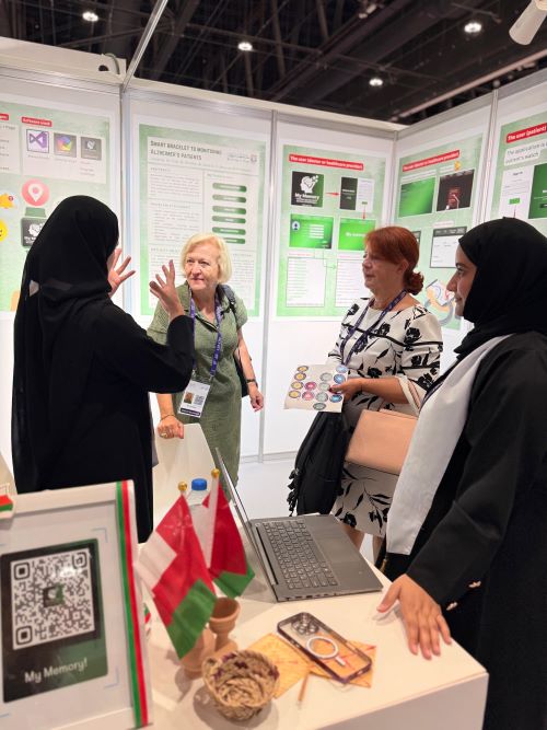 طالبات من جامعة نزوى يشاركن في الملتقى العلمي العالمي بأبوظبي بفكرة "سوار ذكي لمتابعة مرضى الزهايمر"