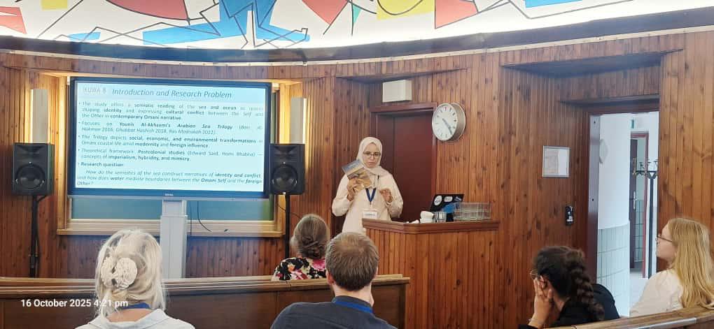 شاركت جامعة نزوى في المؤتمر الدّولي الثّامن لعلم الآثار تحت الماء (IKUWA 8) في أوستنده، بلجيكا في الفترة 13 إلى 17 أكتوبر 2025 بورقة بحثية قدمتها الدكتورة مريم البادية من كلية العلوم والآداب عنوانها: «البحر بوصفه علامة كبرى: مقاربة سيميائيّة في تشكيل هويّة الأنا والآخر الرّواية العُمانيّة: ثلاثية بحر العرب أنموذجًا».