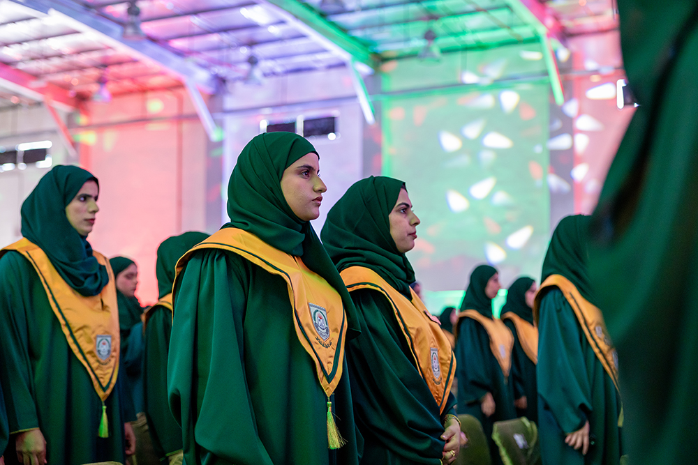 وأضافت: "في هذا اليوم الأغرّ، لا بدّ أن نرفع أكفّ الامتنان أولًا إلى الله، الذي أيّد خطانا بنور الهداية، وأكرمنا بلذة الوصول، ثم إلى آبائنا وأمهاتنا، أولئك الذين حملونا على أكف الدعاء، وسقونا من صبرهم وحنانهم ما أنبت فينا زهر الطموح والتفوق. فجزاهم الله عنا خيرًا، وجعل هذا التخرج بشارة لقلوبهم ونورًا لأيامهم. ونهدي هذا الفخر إلى أساتذتنا الأجلّاء، أنتم منارة الدرب وسراج الطريق، علمتمونا أن الحرف أمانة والفكر مسؤولية، فلكم في قلوبنا تقدير لا يزول وذكرى لا تُمحى".