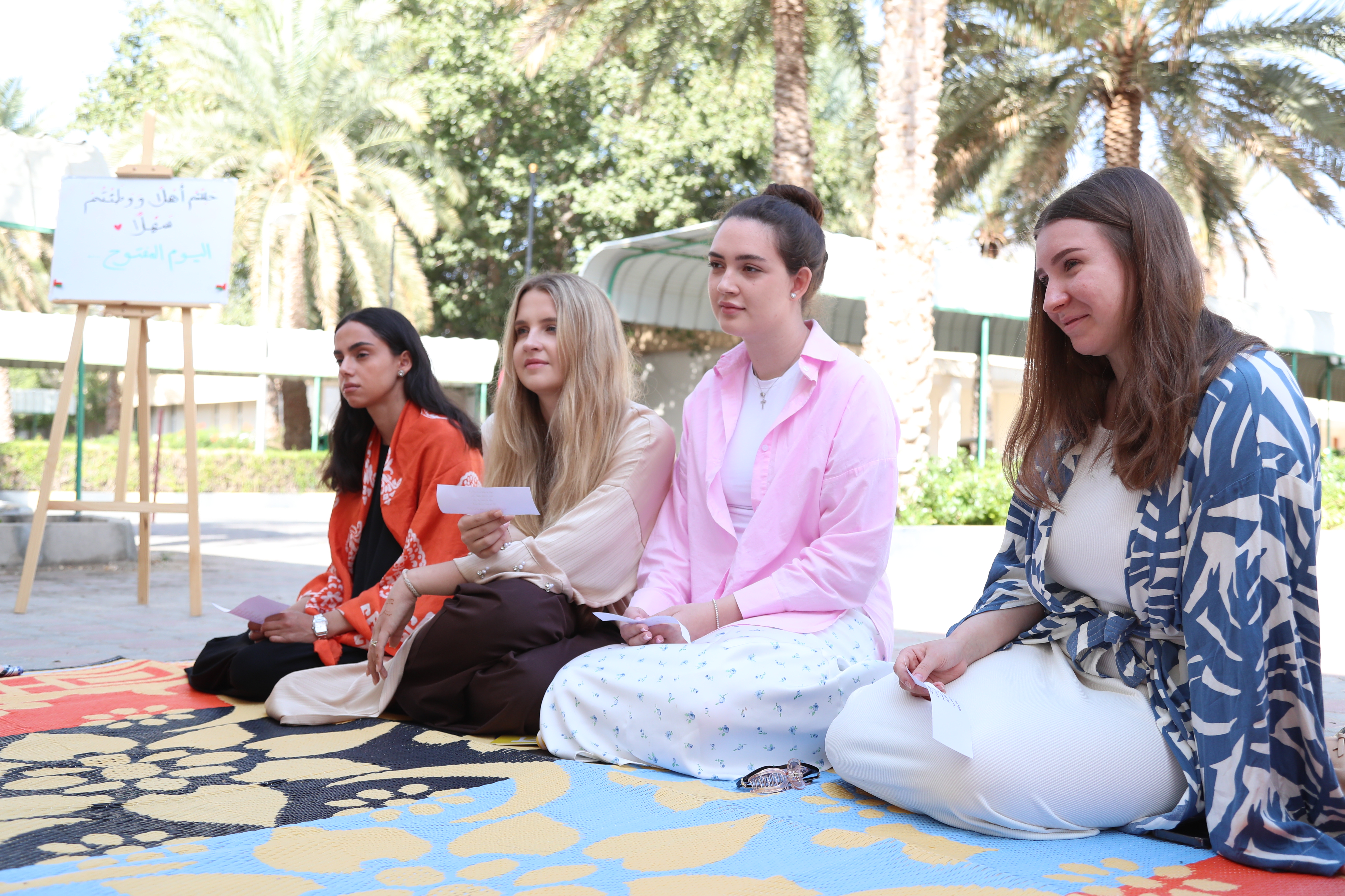 وتضمن اليوم المفتوح نشاطًا ثقافيًا تطبيقيًا تمثل في وصف الطعام في أثناء طهي وجبة الأرز مع الدجاج، إلى جانب فعالية تلوين الرسومات ووصفها؛ بهدف ربط اللغة بالسياق الثقافي والحيوي المستخدم في الحياة اليومية، وتعزيز قدرة الطلبة على التعبير الشفهي الوصفي باللغة العربية.