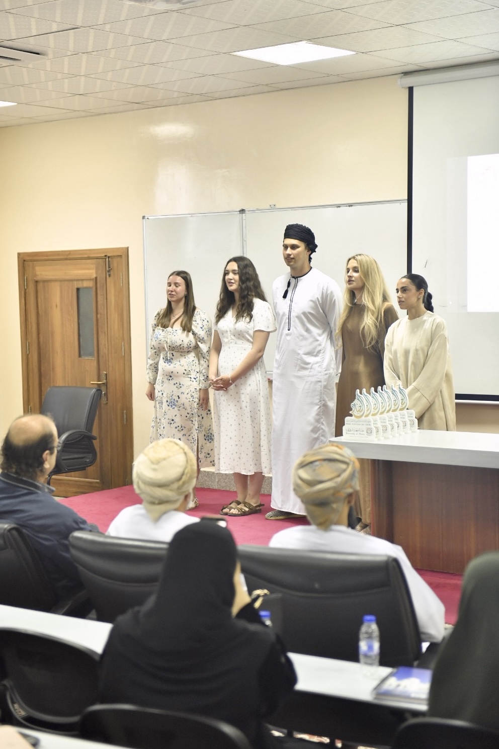 وتضمّن الحفل فقرات تحدث فيها الطلبة المشاركون عن تجاربهم خلال فترة البرنامج مستعرضين أبرز ما اكتسبوه من مهارات لغوية ومعرفية حيث عبّروا عن شكرهم وامتنانهم لجامعة نزوى ومعهد الضاد لتعليم العربية للناطقين بغيرها مشيدين بالدعم الذي حظوا به طوال فترة إقامتهم وقدّموا كلماتهم باللغة العربية في دلالة واضحة على مدى استفادتهم وتطور مستواهم اللغوي خلال البرنامج.