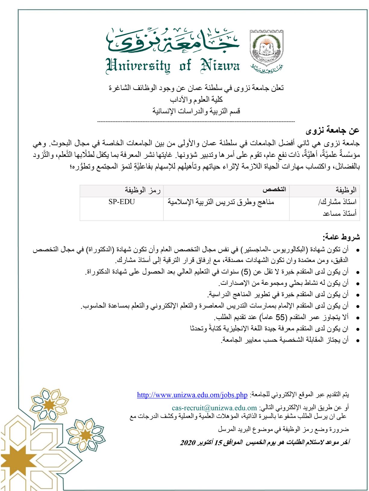 الصفات المُميِّزة لخرِّيجِ جامعةِ نزوى