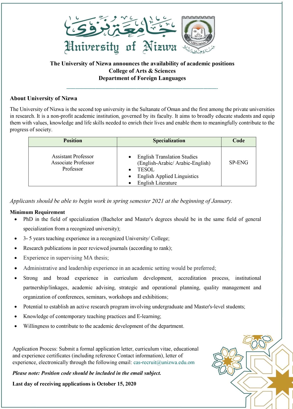: Assistant Prof./ Associate Prof. - English Language