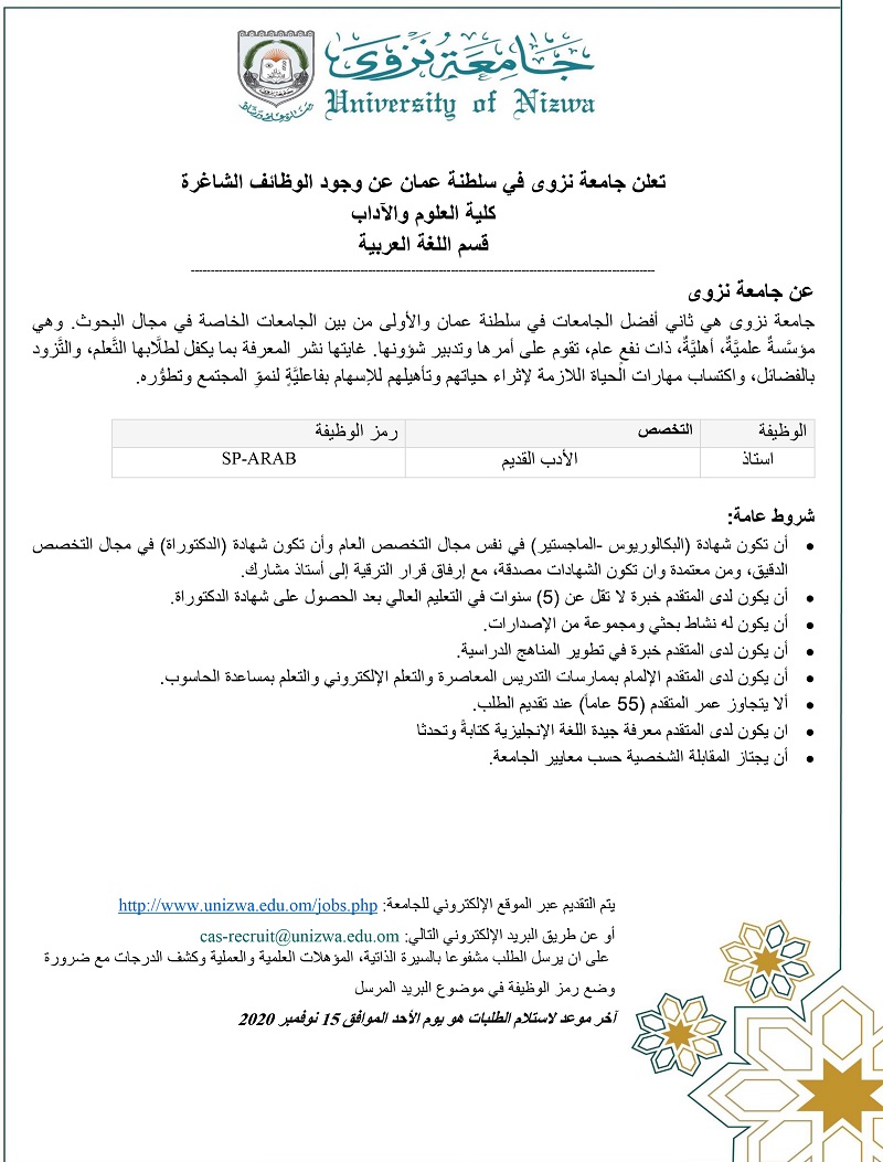 : استاذ في تخصص الأدب القديم- قسم اللغة العربية